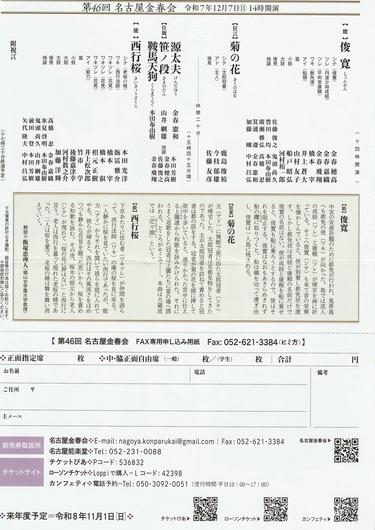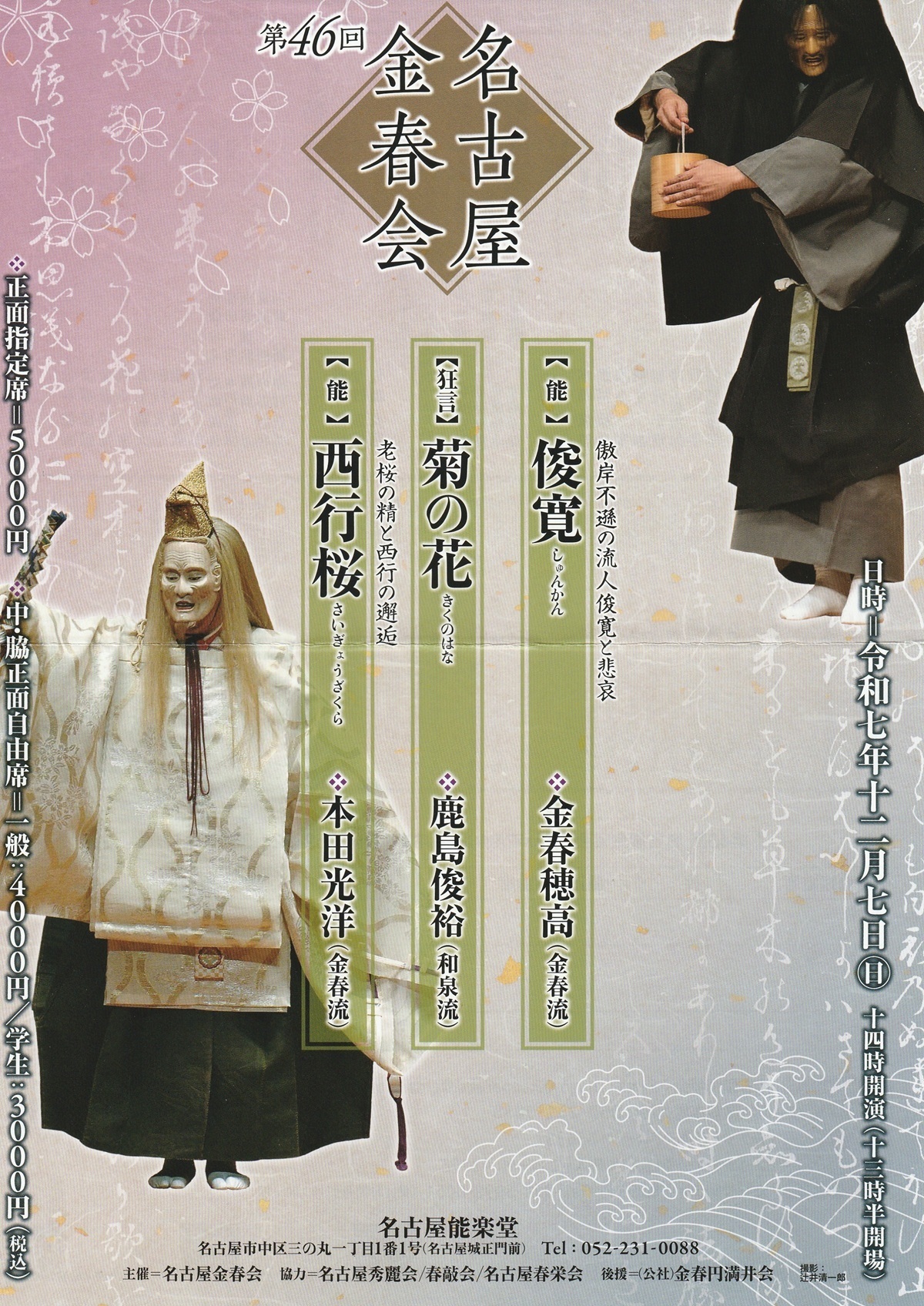 2025年10月5日(日)金春会定期能 開場11:45 開演12:30~国立能楽堂