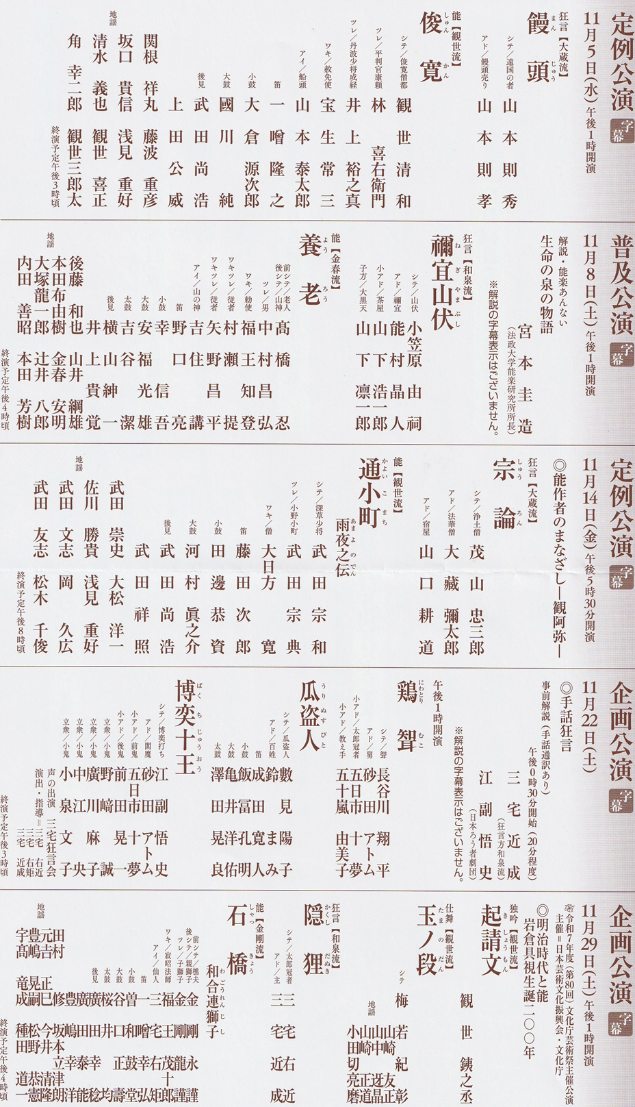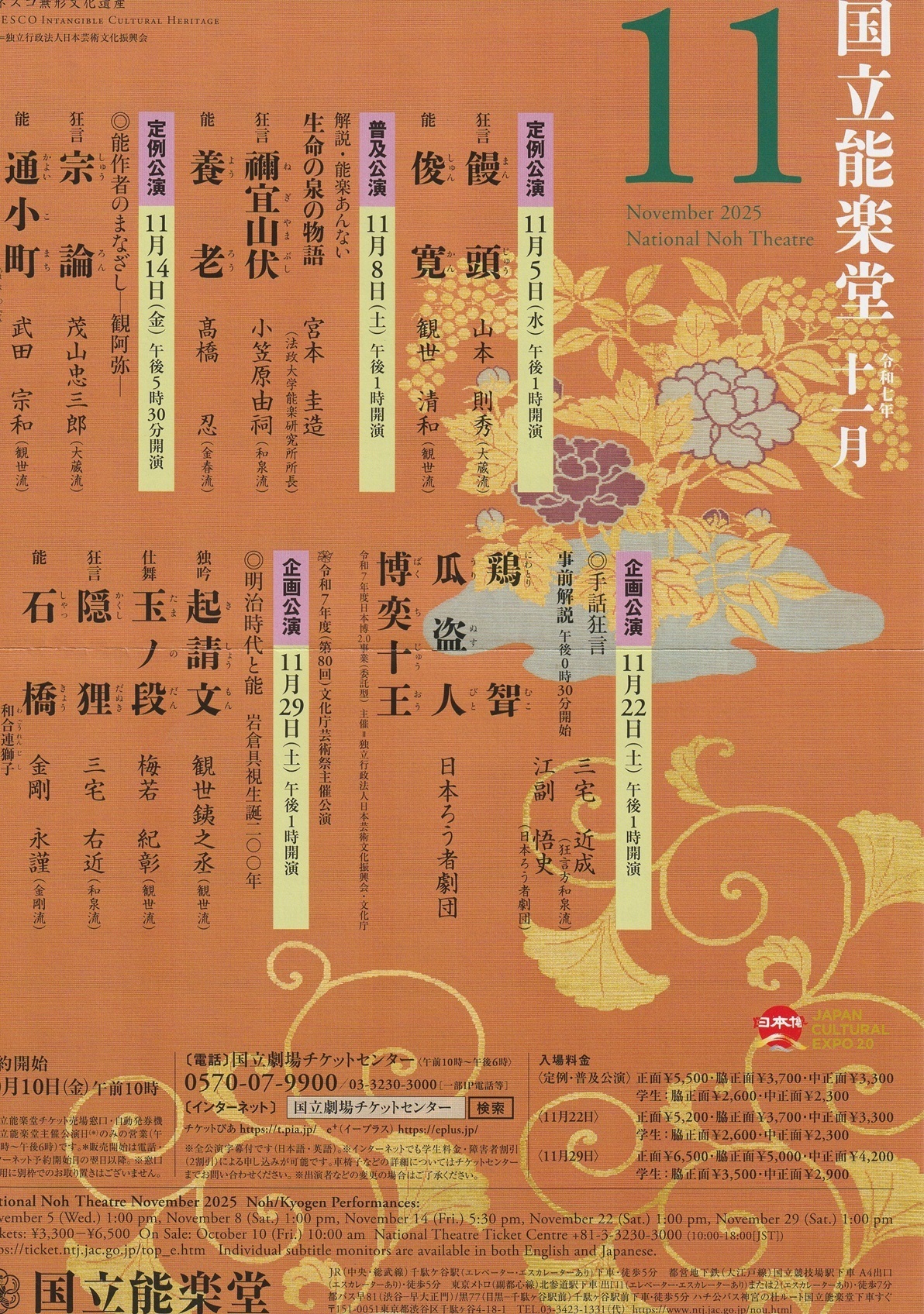 2025年11月8日(土)国立能楽堂普及公演 13:00~国立能楽堂