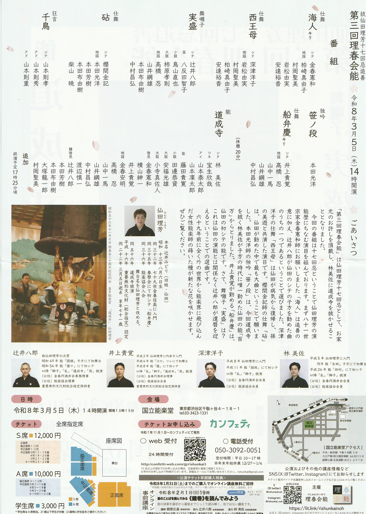 2026年3月5日(木)仙田理芳十七回忌追善 理春会能 14:00~国立能楽堂