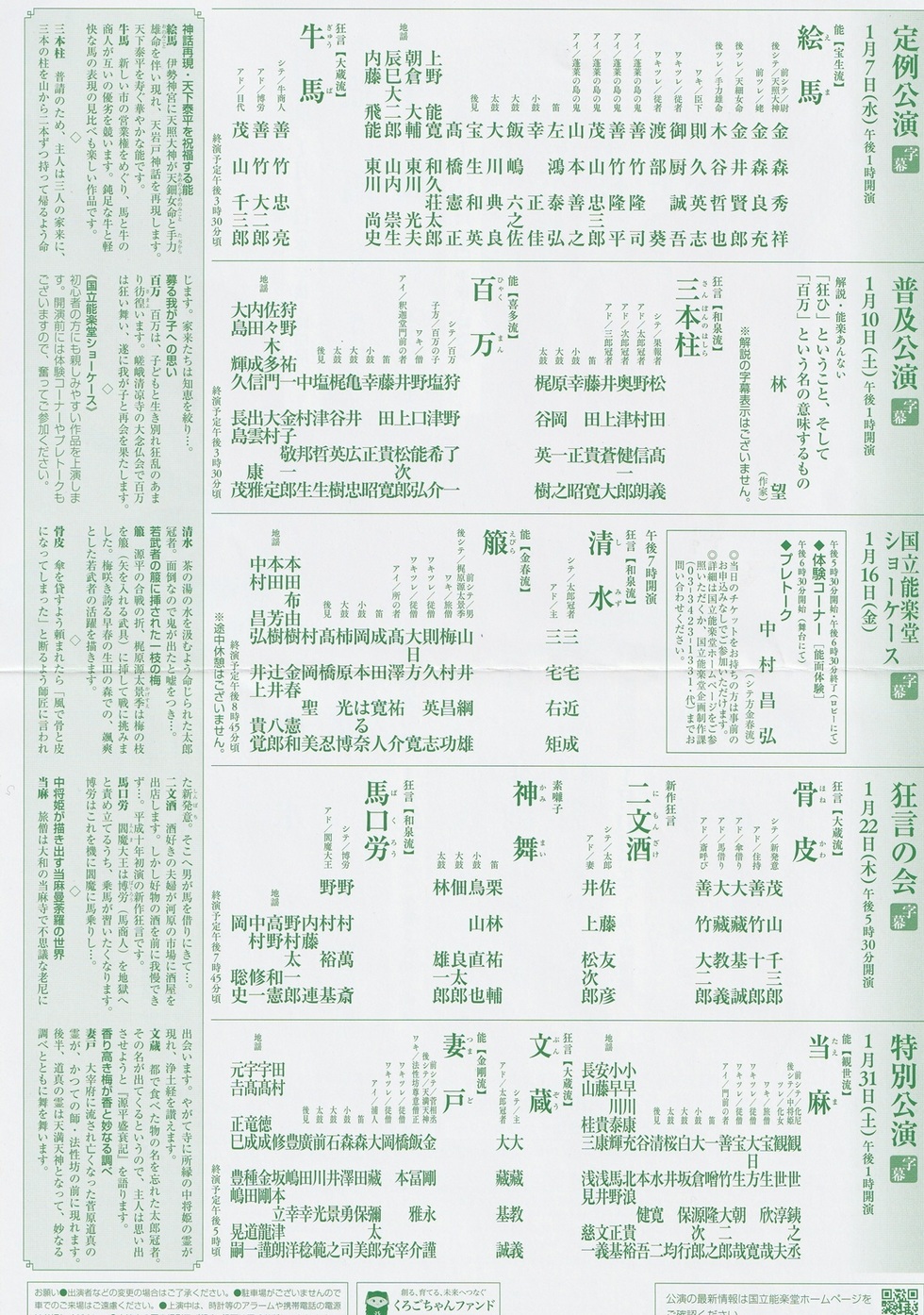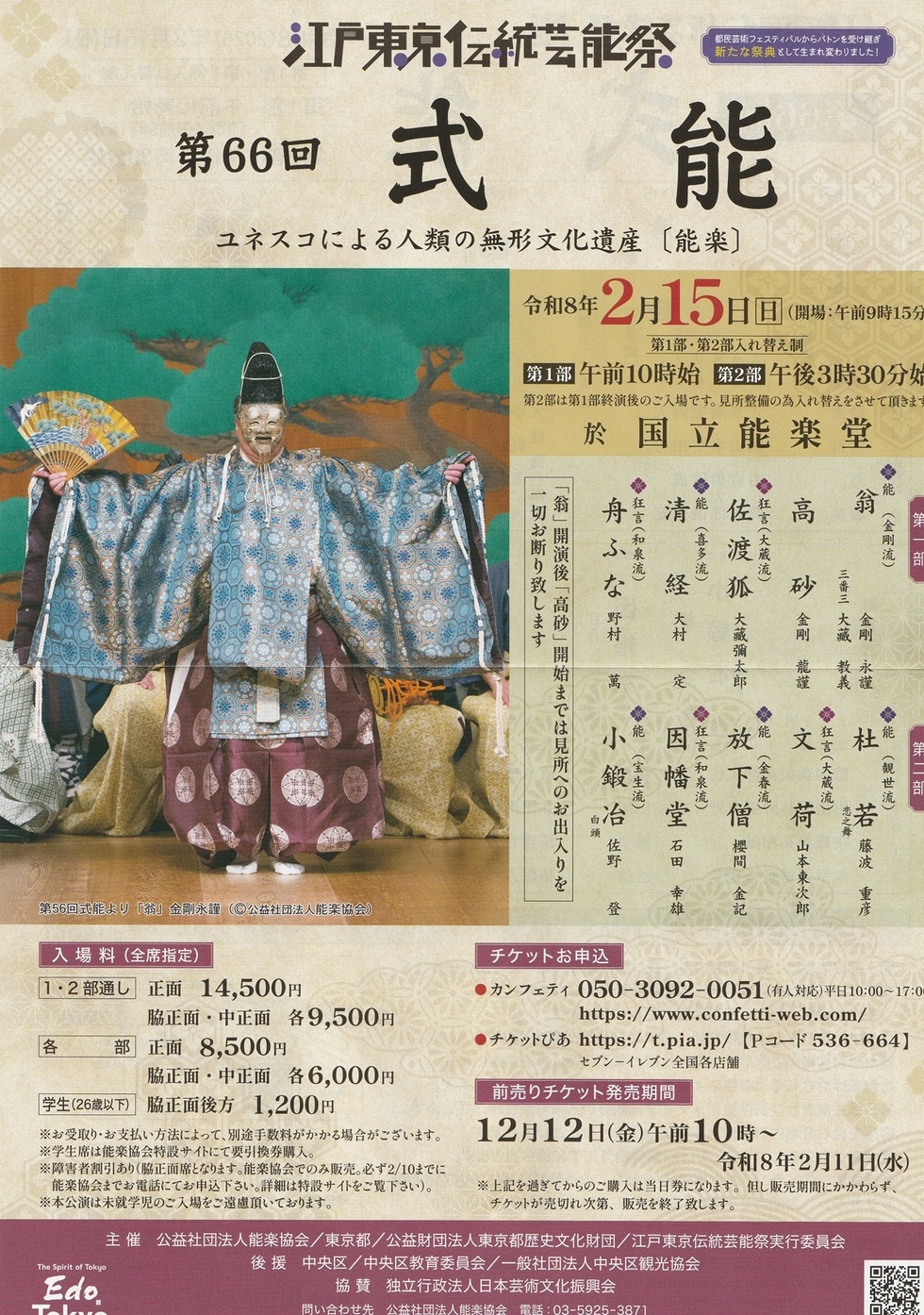 2026年1月18日(土)金春会定期能 開場11:45 開演12:30~国立能楽堂