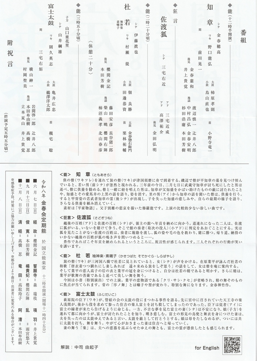 2026年(令和8) 金春会定期能