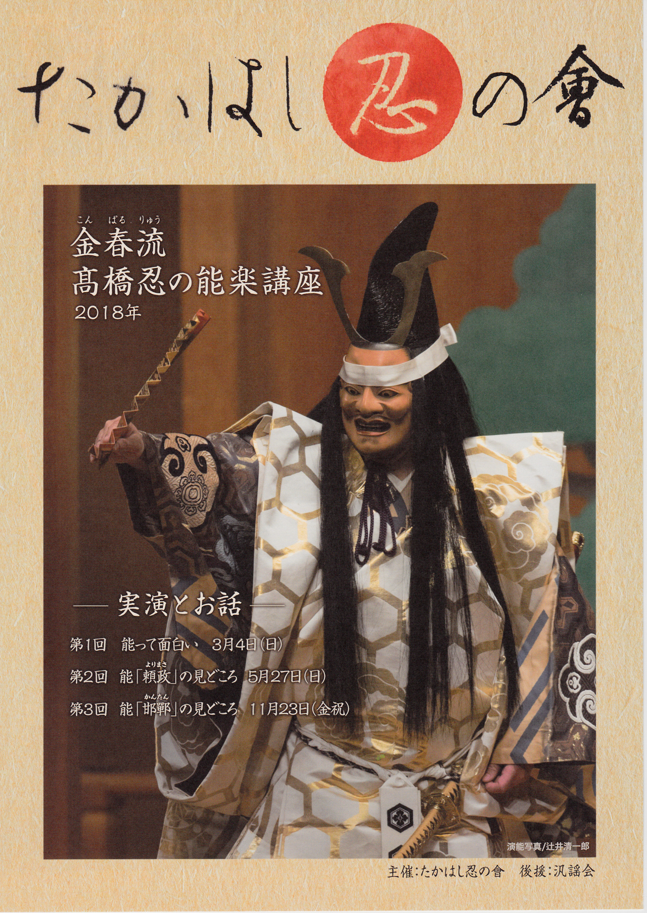 【講座のお知らせ】来月、11月23日(金・祝)、午後1時から国立能楽堂大講義室にて、講座「能・邯鄲の見どころ」を開催します。この講座は12月1日(土)午後1時開演の第1回「士乃武(しのぶ)能」の演目解説です。シテ自らの解説講座です。この講座でさらに当日の「邯鄲」を楽しんで頂けるよう全力投球します。皆様、どうぞ奮ってご参加くださいますよう、お願い申し上げます。お申し込みは「たかはし忍の會」(03-3334-3967)または、当日会場に直接おこしください。なお、第1回「士乃武(しのぶ)能」は、お陰様で残席も僅かとなって来ました。今後とも何卒、よろしくお願い申し上げます。