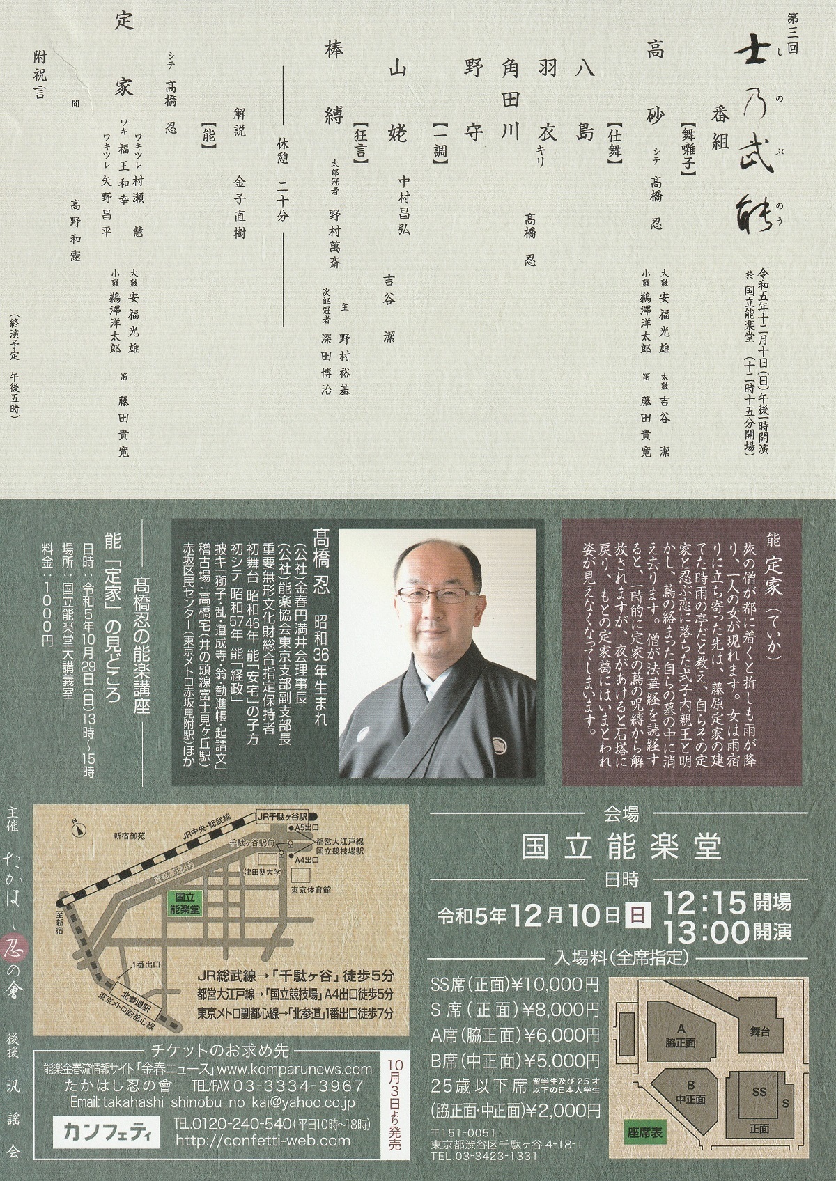 ※〈邯鄲〉を上演した第一回 士乃武能(2018年12月1日)開催前に髙橋忍師から寄せられたメッセージです。